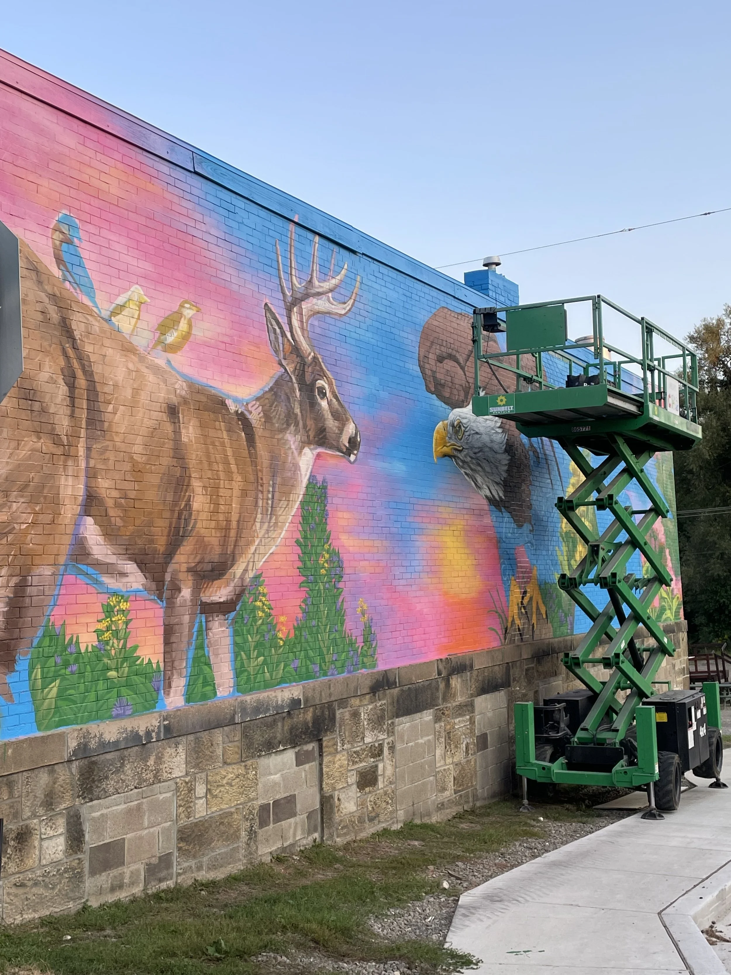 In early September I participated in the Paint CHQ Mural program which helped bring Artists from all over the Nation to paint murals across Chautauqua County. Justin and Emily designed a mural that wrapped around multiple surfaces of a building at the main intersection in Sherman featuring local flora, fauna and landscape elements to draw attention to the area’s natural beauty. I was an assistant artist on this project working closely alongside Justin. The finished mural in the town center has completely transformed the town center of Sherman NY.