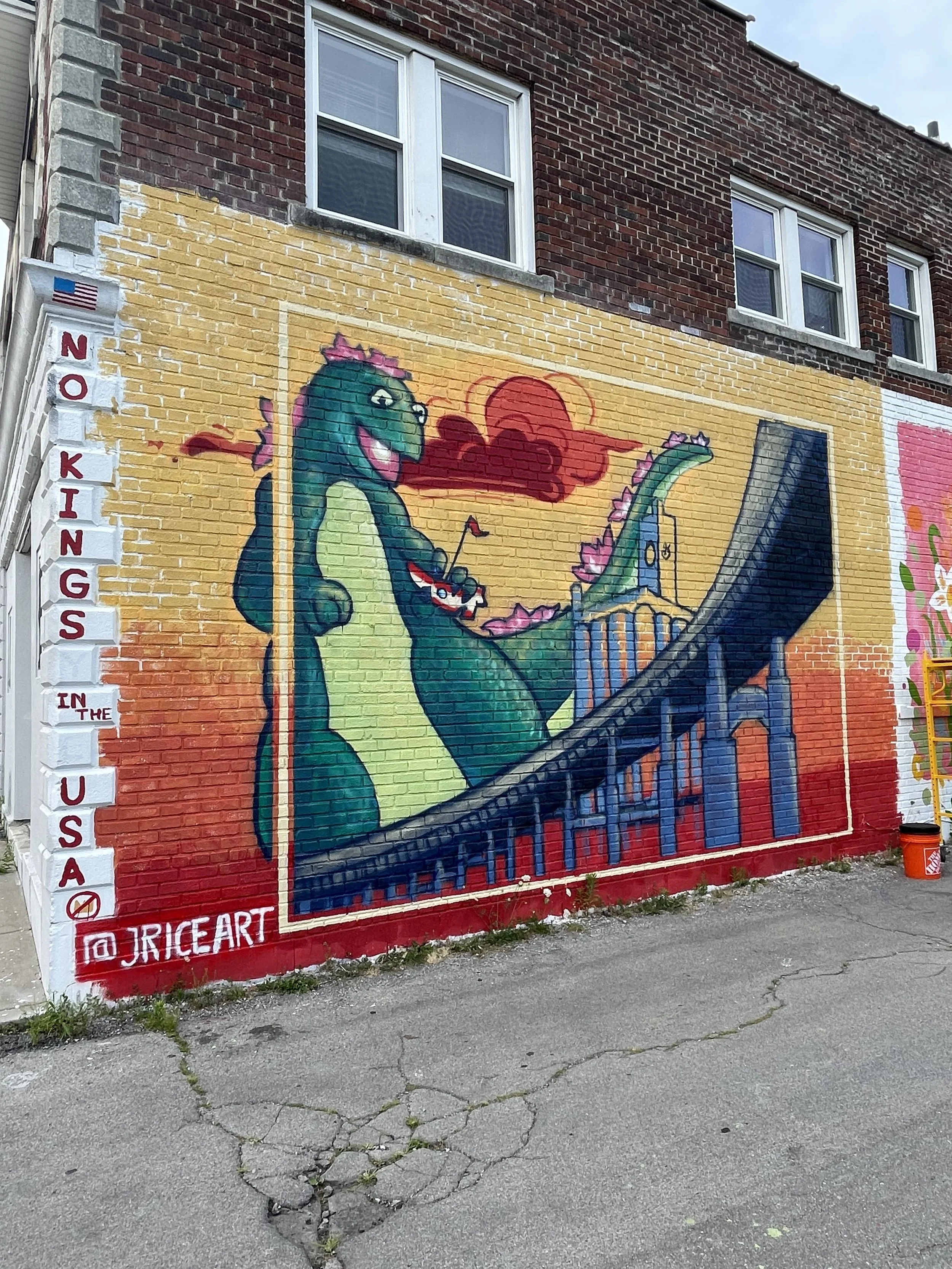 This mural was painted in Buffalo NY, in Hertel Alley in concert with the Hertel Alley Mural Festival hosted in concert with Art Services Inc and Joel Feroletto. Spanning 17’ x 24’ this was my first and largest mural that I have designed to date. My first, and largest solo mural of 2025, I used VR goggles to project my sketch onto the wall and then a combination of exterior acrylic and spray paint to bring the painting to life. Most of the mural was painted over a 3-day span during the festival with a few extra weekend sessions to finish the piece. A special thank you goes out to all of the family and friends that stopped by to paint, bring food or just cheer us on - I’m truly grateful to each of you for your help.